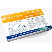 Размеры пластырных повязок: 9х15 см, 9х10 см, 6х8 см.