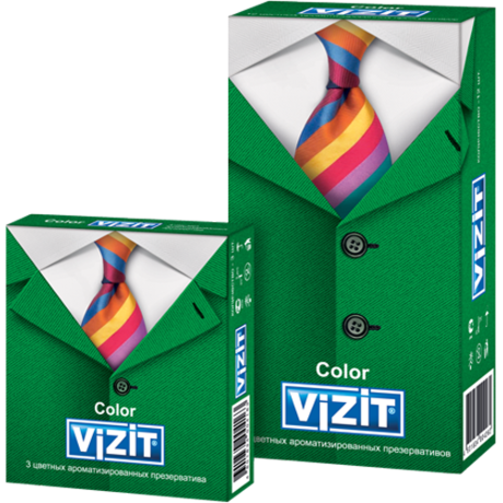 Другие формы «Презерватив VIZIT»Цветные презервативы с накопителем, гладкие, с ароматизированной (клубника, мята, банан) силиконовой смазкой.
