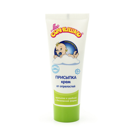 Детская присыпка Мое солнышко в форме крема, в отличие от обычной присыпки, не скатывается на коже и обеспечивает более комфортное и безопасное применение, исключающее попадание порошкообразного талька в дыхательные пути малыша. Оксид цинка оказывает подсушивающее и противовоспалительное действие в складочках нежной детской кожи, в местах воспалений.