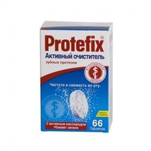 Другие формы «Протефикс»Таблетки Протефикс содержат активный кислород , благодаря которому быстро и основательно очищают зубные протезы, не разрушая при этом материал зубных протезов, надолго сохраняют свежий запах во рту.