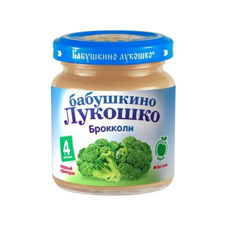 Другие формы «Пюре БАБУШКИНО ЛУКОШКО»Пюре Бабушкино Лукошко Брокколи. Пюре из брокколи идеально подходит для первого овощного прикорма, так как брокколи - гипоаллергенный продукт. Высокое содержание витамина С, фолиевой кислоты и железа улучшает кроветворение и способствует профилактике железодефицитной анемии, укрепляет иммунитет.
