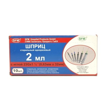 Шприц инъекционный одноразовый 2 мл, с иглой