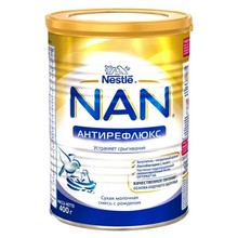 NAN Антирефлюкс содержит натуральный загуститель крахмал-который придат смеси необходимую густоту, задерживая е в желудке и предотвращая обратное забрасывание пищи в пищевод (срыгивание). Смесь NAN Антирефлюкс снижает риск развития пищевой аллергии и способствует укреплению иммунитета. Смесь NAN Антирефлюкс обеспечивает ребенка всеми питательными веществами, необходимыми для его оптимального умственного и физического развития. Смесь NAN Антирефлюкс предназначена для кормления детей с рождения в случаях, когда грудное вскармливание невозможно