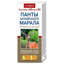 Другие формы «Софья крем для тела панты алтайского марала»Обладает противовоспалительным, антимикробным и противоревматическим действием.
