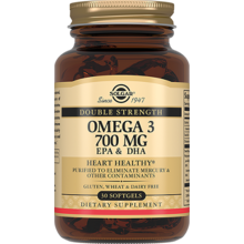 Жирные кислоты Омега-3 способствуют защите зрения, улучшению работы головного мозга, профилактике сердечно-сосудистых заболеваний, снижению уровня холестерина. «Двойная Омега-3 700 мг ЭПК и ДГК» содержит ПНЖК Омега -3 -1400 мг (суточная дозировка) и производится по уникальной технологии молекулярной дистилляции, методу, который позволяет удалить соли тяжелых металлов из рыбьего жира. Для защиты от прогоркания и окисления в каждую капсулу «Двойная Омега-3 700 мг ЭПК и ДГК» добавлен натуральный витамин Е.