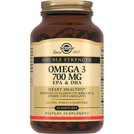 Жирные кислоты Омега-3 способствуют защите зрения, улучшению работы головного мозга, профилактике сердечно-сосудистых заболеваний, снижению уровня холестерина. «Двойная Омега-3 700 мг ЭПК и ДГК» содержит ПНЖК Омега -3 -1400 мг (суточная дозировка) и производится по уникальной технологии молекулярной дистилляции, методу, который позволяет удалить соли тяжелых металлов из рыбьего жира. Для защиты от прогоркания и окисления в каждую капсулу «Двойная Омега-3 700 мг ЭПК и ДГК» добавлен натуральный витамин Е.