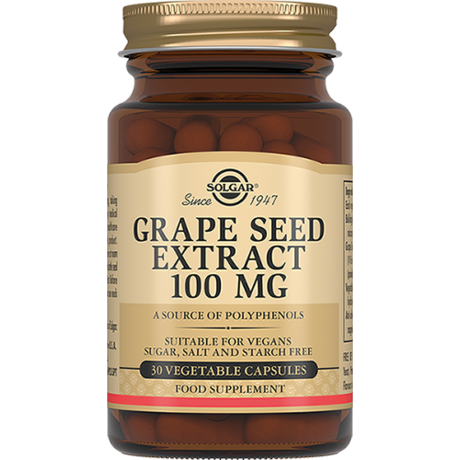 Другие формы «Солгар»Капсулы «Экстракт виноградных косточек» рекомендуются в качестве биологически активной добавки к пище - источника полифенольных соединений и проантоцианидинов (СанПиН 2.3.2.1290-03 п. 2.1). «Экстракт виноградных косточек» способствует укреплению стенок сосудов, уменьшению отечности и ощущения усталости в ногах, улучшению цвета лица, участвует в синтезе коллагена, за счет чего может снизить риск преждевременного старения. Для производства капсул «Экстракта виноградных косточек» используется только тщательно отобранный виноград самого высокого качества и щадящие технологии производства, что обеспечивает высокое содержание полифенолов (90 мг) в каждой капсуле.