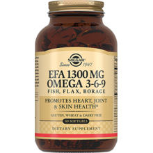 Другие формы «Солгар»Капсулы «Комплекс жирных кислот 1300 мг Омега 3-6-9» рекомендуются в качестве биологически активной добавки к пище - дополнительного источника полиненасыщенных жирных кислот, в том числе ПНЖК омега 3, витамин Е (СанПиН 2.3.2.1290-03 п. 2.1). «Комплекс жирных кислот 1300 мг Омега 3-6-9»- оптимальный баланс незаменимых жирных кислот, который способствует приданию волосам блеска и эластичности, коже увлажнения, позволяет уменьшить проявление кожных заболеваний, таких как псориаз и экзема. Для сохранения свежести продукта в каждую капсулу добавлен витамин Е.