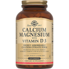 Другие формы «Солгар»Таблетки «Кальций - Магний с витамином D3» рекомендуются в качестве биологически активной добавки к пище - дополнительного источника витамина D3, кальция и магния (СанПиН 2.3.2.1290-03 п. 2.1). «Кальций Магний с витамином D3» содержит легко усваиваемую в организме цитратную (хелатную) форму кальция и магния. Кальций и магний в составе комплекса содержатся в оптимальном соотношении 2:1. Кальций с витамином D3 и магний способствуют укреплению костной ткани и профилактике остеопороза, уменьшению судорог икроножных мышц и нормальной работе здоровью сердечно-сосудистой системы.