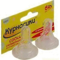 Другие формы «Соска КУРНОСИКИ»Силиконовая соска Курносики большого размера имеет классическую форму. Подходит ко всем стандартным бутылочкам. Данная форма отверстия обеспечивает средний поток. Тугая соска из медицинского силикона, по форме напоминает материнскую грудь, и успешно моделирует для ребенка процесс ее сосания. Оптимальна для негустого питания: молока и молочных смесей, чая, воды. Для детей с 6-ти месяцев.