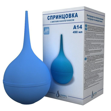 Перед применением спринцовку собрать, для чего наконечник вставить в отверстие баллона; наконечник смазать вазелином, ланолином или другим нейтральным жиром.
