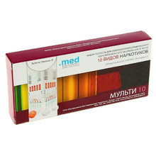 Быстрое (2 минуты) выявление десяти видов наркотиков в моче человека. Тест позволяет также определить вид употреблнного наркотика. Тест способен выявить наркотик в течении 5-7 суток с момента употребления.