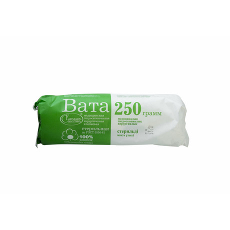 Вата медицинская стерильная - 250 г в инд.уп. ВАТА МЕДИЦИНСКАЯ ГИГРОСКОПИЧЕСКАЯ ХИРУРГИЧЕСКАЯ ХЛОПКОВАЯ СТЕРИЛЬНАЯ ПО ГОСТ 5556-81/ЕМЕЛЬЯНЪ САВОСТИНЪ - медицинское изделие. Внешний вид и свойства: вата белого цвета, без постороннего запаха, примесей.