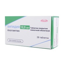 Рекомендуемая доза препарата Випидия составляет 25 мг один раз в сутки в качестве монотерапии или в дополнение к метформину, тиазолидиндиону, производным сульфонилмочевины или инсулину, или в качестве трехкомпонентной комбинации с метформином, тиазолидиндионом или инсулином. Препарат Випидия может приниматься независимо от приема пищи. Таблетки следует проглатывать целиком, не разжевывая, запивая водой.