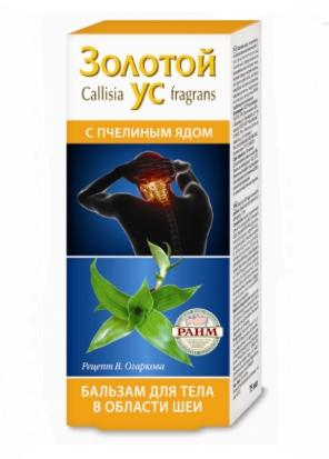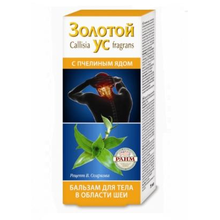 Другие формы «Золотой ус бальзам с пчелиным»Золотой ус – мощный биогенный стимулятор с широким спектром лечебного действия. Благодаря редкому сочетанию биологически активных веществ, Золотой ус помогает при множестве заболеваний, особенно он эффективен при лечении болезней суставов и позвоночника: ревматизма, артрита, артроза, радикулита, остеохондроза. Противорадикулитный Бальзам Золотой ус с пчелиным ядом разработан ведущими российскими ревматологами и фитотерапевтами. Компоненты Бальзама обладают выраженным болеутоляющим, противовоспалительным согревающим, регенерирующим действием, препятствуют отложению солей, способствуют повышению эластичности межпозвонковых дисков. Бальзам «Золотой ус с пчелиным ядом» особо рекомендуется при пояснично-крестцовом и шейно-грудном радикулите, миозите, ишиасе, подагре в комплексном лечении в качестве вспомогательного средства.