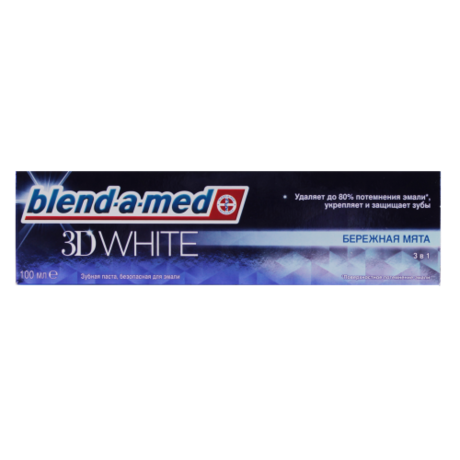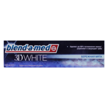 Другие формы «Зубная паста »Зубные пасты Blend-a-med 3D White содержат в себе формулу все-в-1, обеспечивающую отбеливание, укрепление и защиту от поверхностного потемнения эмали. Безопасная для эмали формула мягко удаляет до 80 % поверхностного потемнения эмали, делая улыбку красивой и белоснежной.