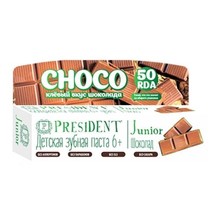 Детская зубная паста PRESIDENT Junior Choco от 6 лет обеспечивает длительный и эффективный уход за молочными и постоянными зубами. Стимулирует процесс реминерализации, предотвращает разрушение эмали и развитие кариеса.
