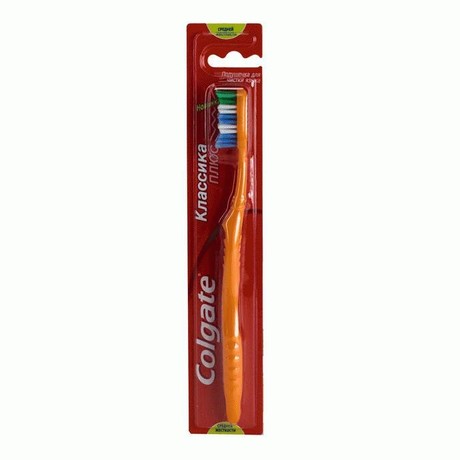 Зубная щетка КОЛГЕЙТ Классика плюс средняя имеет щетинки V-образной формы, которые глубоко и бережно очищают межзубные промежутки.